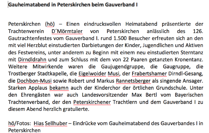 Außerdem song ma danke an de Feilnbacher Trachtler und an olle Peterskirchner Trachtler de unseren Verein so stark vertreten ham!
