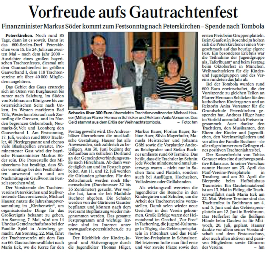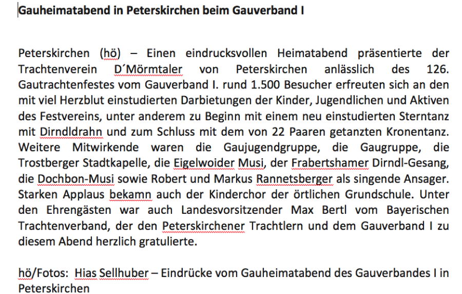 Mir gfrein uns auf a scheens Gaufest in Prutting und gfrein uns wenn vui Peterskirchner Trachtler dabei han!