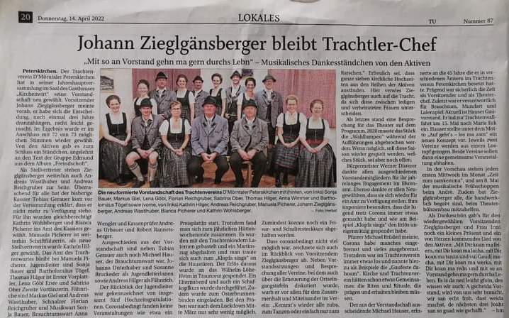 Am Freitag, den 08.04.2022 fand unser Jahreshauptversammlung im Saal vom Kirchenwirt in Peterskirchen statt.